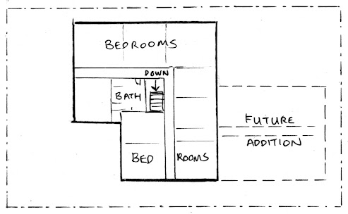 Upper floor of a frat. The other types of group living have similar upper floor plans, the main difference is in the lower floors. Bedrooms are a mix of private and shared rooms.